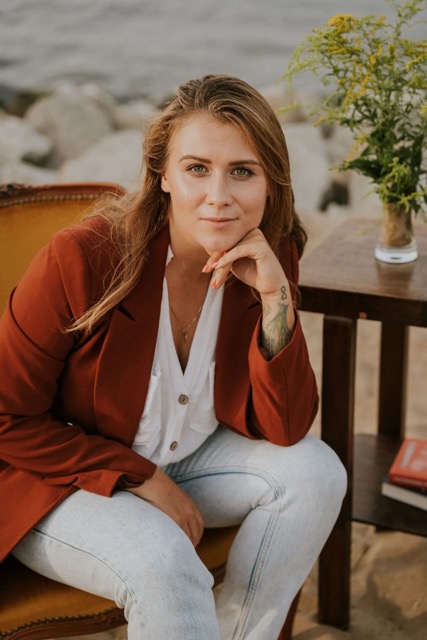 Psycholog i psychoterapeutka kontekstualno-behawioralna w szkoleniu. W gabinecie pomaga emigrantom odnaleźć stabilność nawet w ciągłym ruchu i przekuć brak zaufania do siebie w samoakceptację. Zgłębia temat budowania autentycznych relacji opartych na dost∂pności emocjonalnej, nie tylko w kontekście romantycznym, ale rownież w platonicznej przyjaźni i większych społecznościach. Ma za sobą 3 lata podróży autostopem i 5 lat emigracji na portugalskiej wsi. W wolnym czasie surfuje i gra muzykę elektroniczną.